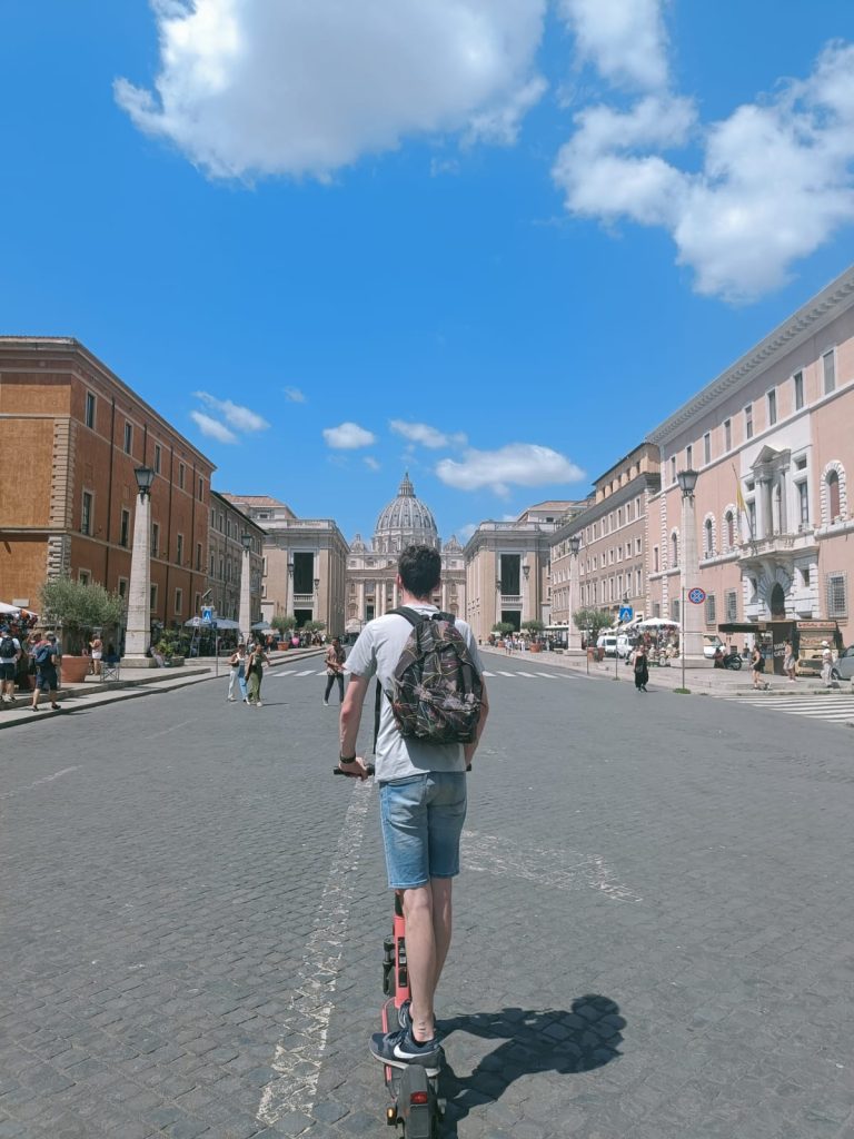 de wegen waren niet altijd even fijn om op te rijden, maar het was wel echt heerlijk met het windje erbij!! Het was 35 °C met gevoelstemperatuur van 40 °C, dus we besloten om maar niet in de ellenlange rij in de brandende zon in de rij te gaan staan voor de Sixtijnse kapel. We hebben de benodigde foto’s gemaakt en zijn een winkelstraatje ingegaan voor de nodige souvenirs.